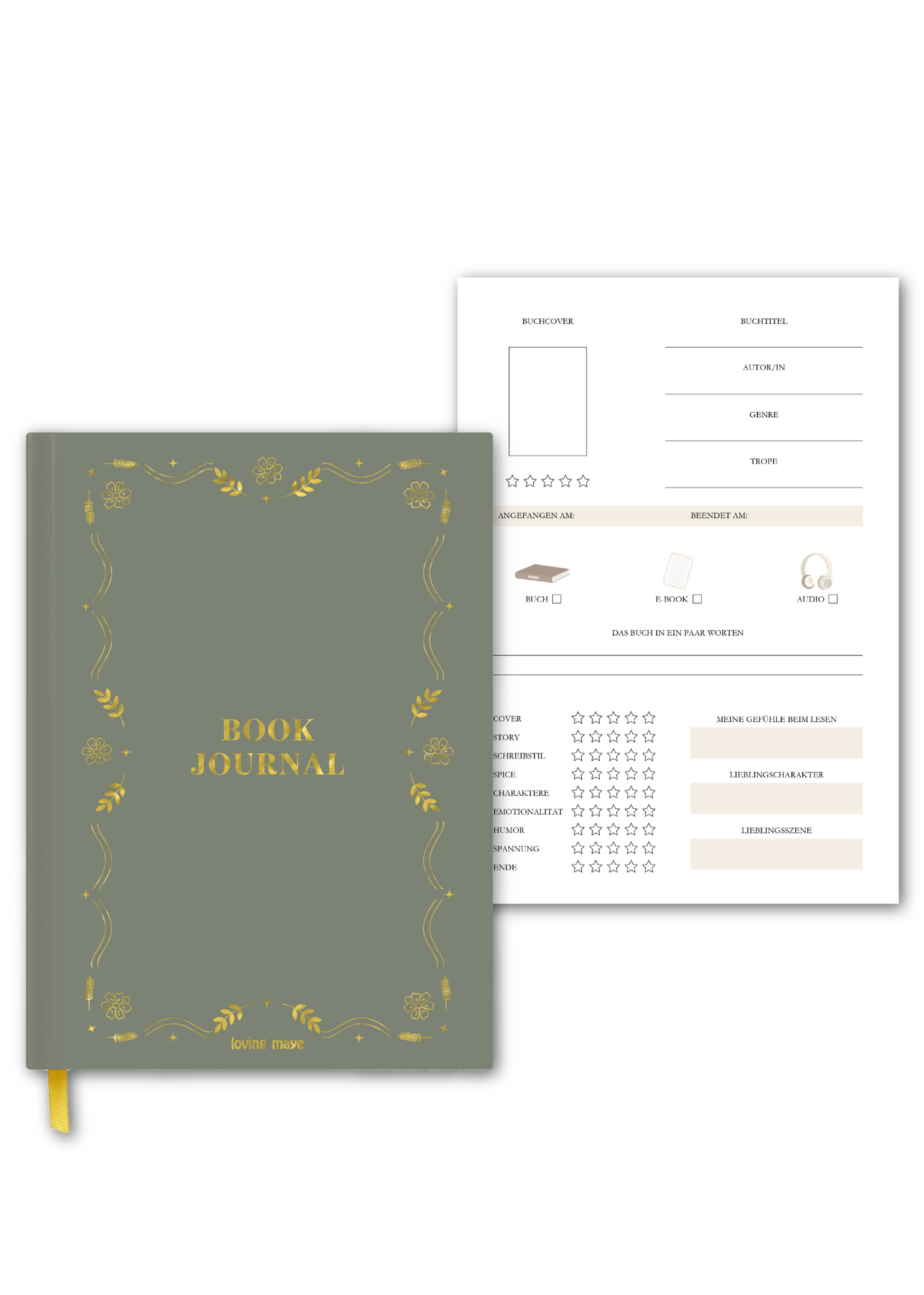 Perfekt für alle leidenschaftlichen Leser/innen mit tollen Inhalten wie Wrap Ups, To Be Read Listen, ausführlichen Book Reviews aber auch süßen Challenges wie "Book Bingo". Natürlich lag es uns auch sehr am Herzen, dass das Book Journal von außen genauso toll ist wie von innen und deswegen gibt es das Journal in zwei verschiedenen Farben. Dazu passend schmücken wunderschöne Verzierungen in goldener Optik das Cover.